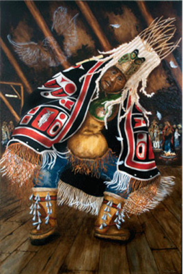 The winter owl dance ceremony. Should a down feather placed in the head dress land on you as he dances,you will be blessed.