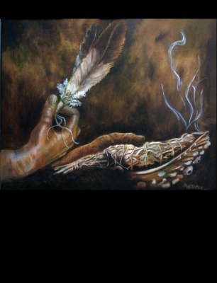 Smudging with a juvenile eagle feather.