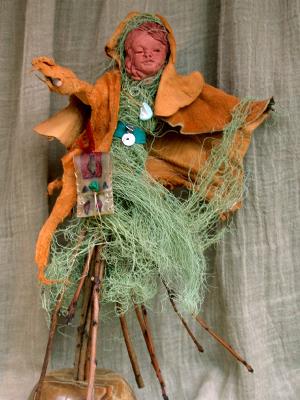 Spirit doll with a handmade parfleche (a Native American rawhide container) and healing stones.