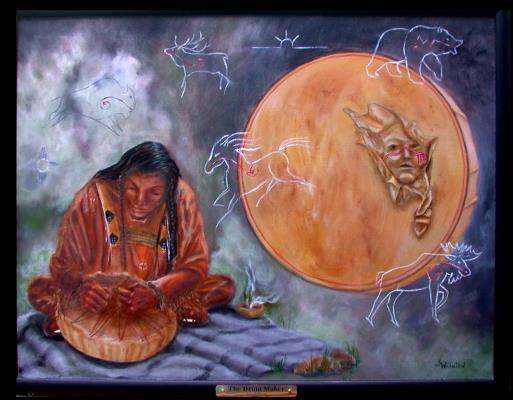 Songs and prayers are carried to the creator with the steady beat of spirit drum.As the drum maker meditates on the repairs needed his spirit shows him what could be.